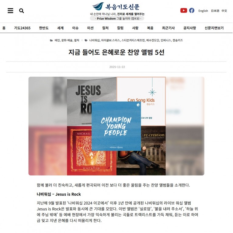 뮤직타임 [기획기사] 지금 들어도 은혜로운 찬양 앨범 5선(복음기도신문)